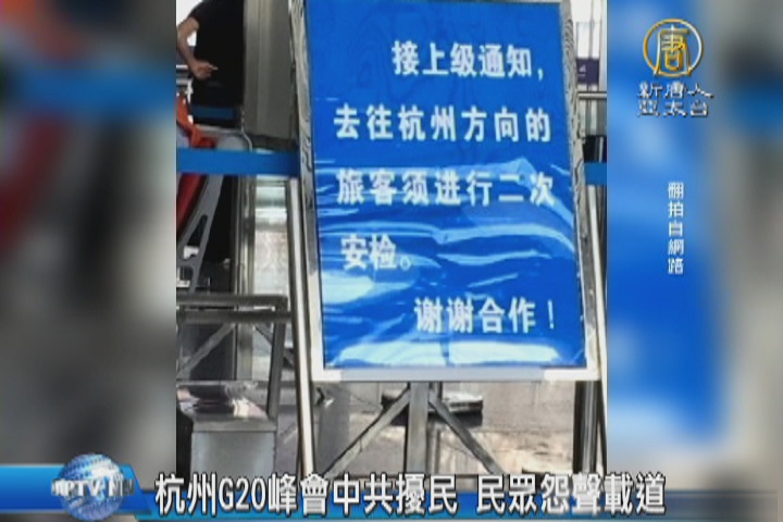 【新唐人亞太台 2016 年 08 月 17 日訊】9月4、5日,G20峰會將在浙江杭州舉辦,雖然距離現在還有20天,但杭州 全城 安保已經達到最高級別,店鋪、超市、農貿市場等陸續關閉,各企業也開啟休假模式,民眾只能囤積食物因應停業。更誇張的是,連寵物也成為「維穩」對象,家裡養的寵物狗不能上街,必須辦理養狗證。交通方面也實施最嚴格的安檢,讓民眾怨聲載道。
