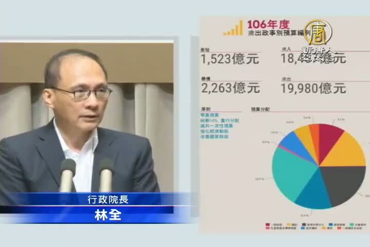 【新唐人亞太台 2016 年 08 月 18 日訊】行政院會今天(18日)通過106年度中央政府總預算案,行政院長林全今天親上火線說明,這次總預算歲入、歲出規模都是微幅增加,差短金額也微降,一切安排都是微小的調整,希望維持穩健財政。