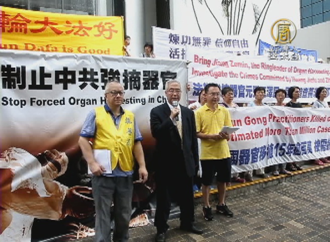 數十名香港法輪功學員,到舉行國際器官移植協會大會的灣仔會展中心外,揭露中共活摘罪行,香港法輪佛學會發言人簡鴻章呼籲,來港參加大會的數千名的國際醫學界專家進一步了解中共活摘器官的真相,他批評,這次主辦方邀請多位黃潔夫、鄭樹森等多位中共強制活摘器官的罪犯,意圖漂白活摘罪行。又指青關會成員干擾活動,更加印證中共活摘罪行。