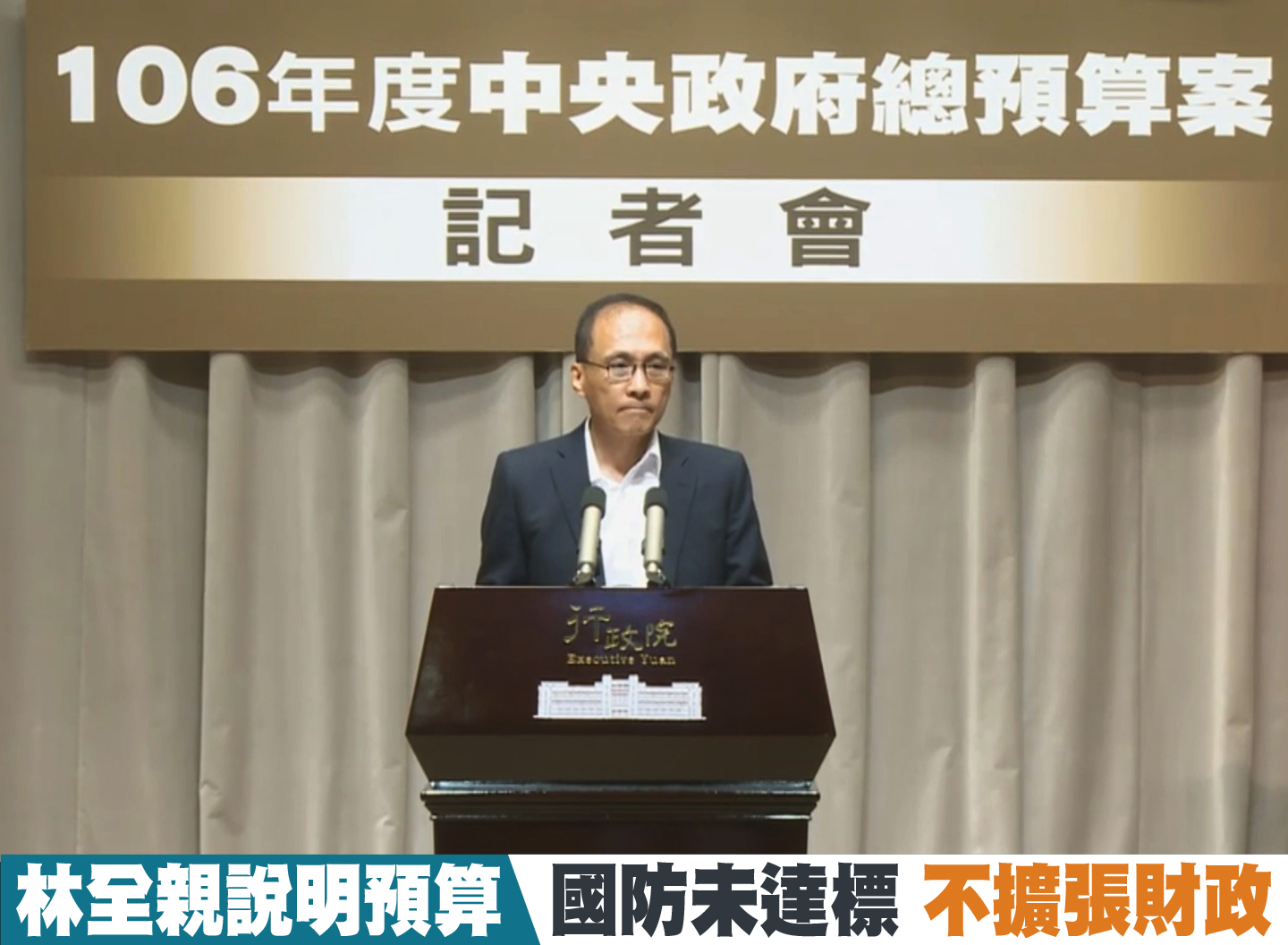 行政院長 林全:「國防預算我們訂的目標,其實是,在現階段做不到,這個部份我有誠實地對大家來說明。不能夠製造,不能夠生產的國防武器,如果說是國外有這種機會,我們能夠採購得到,我們都可以編特別預算,或用其它方式來處理,絕對不受這個限制。」