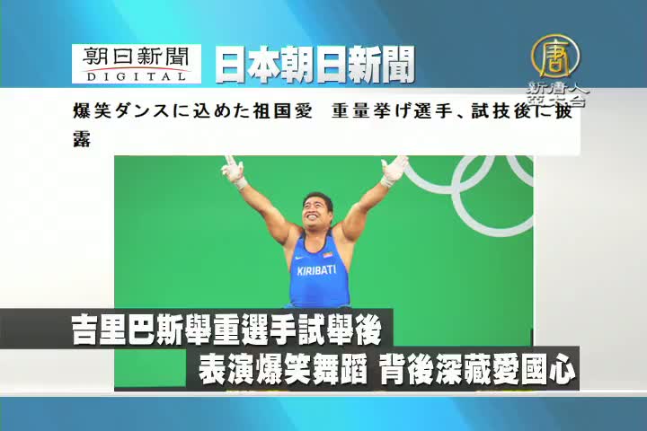 【新唐人亞太台 2016 年 08 月 19 日訊】來看到日本朝日新聞報導:里約奧運上,一位來自太平洋島國吉里巴斯的舉重選手,每次在試舉後都會表演爆笑舞蹈。他表示,因為祖國深受地球暖化困擾,希望用舞蹈喚醒群眾意識。