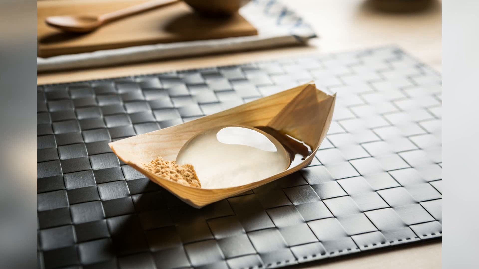 晶瑩剔透、像一顆大大的雨滴。這種「雨滴蛋糕」是日本和?子的一種,名為「水信玄餅」,來自加州的華裔Darren Wong在今年4月把它引進紐約。