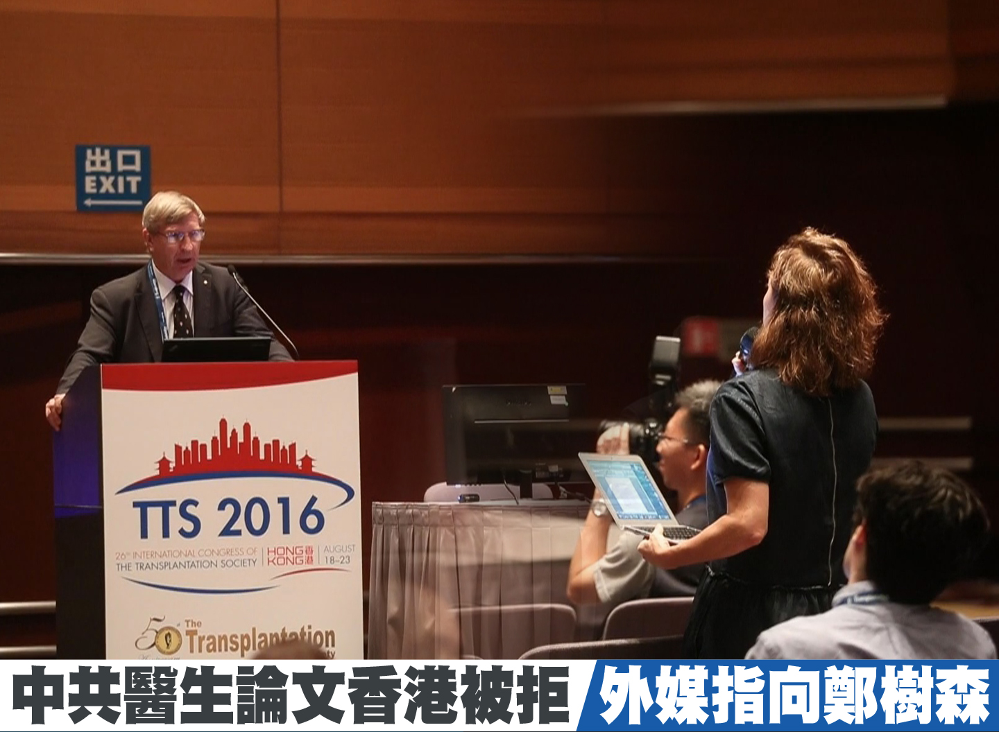 【新唐人亞太台 2016 年 08 月 20 日訊】香港傳真,帶您聚焦,第26屆國際器官移植大會,正在香港召開,大會前主席查普曼承認,一名中國醫生提供的研究材料違規,正在研擬調查。外媒報導,要被調查的這個人,就是浙江大學醫學院附屬第一醫院院長,鄭樹森。