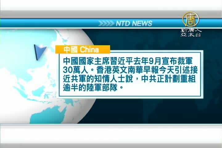 中國國家主席習近平去年9月宣布裁軍30萬人。香港英文南華早報今天引述接近共軍的知情人士說,中共正計劃重組逾半的陸軍部隊。