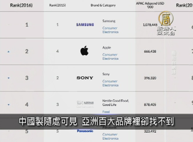 中國製隨處可見 亞洲百大品牌裡卻找不到