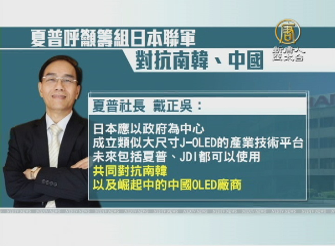 日經新聞報導,夏普社長戴正吳,29號透露,希望聯手日本顯示器公司(JDI),合組日本OLED聯軍。戴正吳呼籲:日本應以政府為中心,成立類似大尺寸J-OLED的產業技術平台,未來包括夏普、JDI都可以使用,共同對抗南韓以及崛起中的中國OLED廠商。