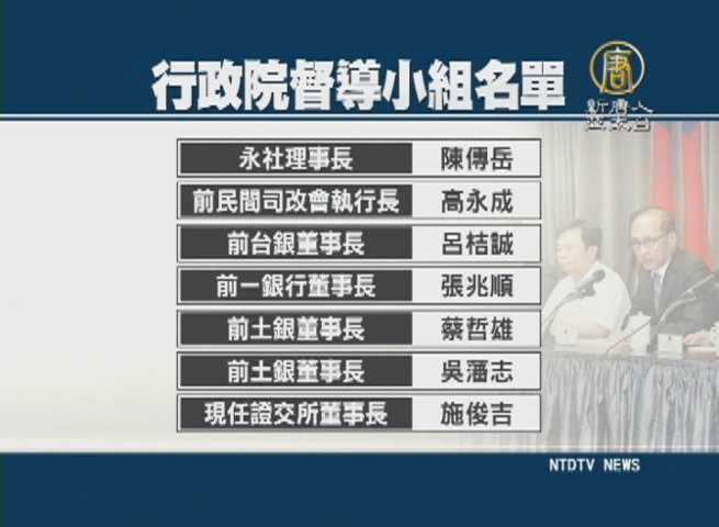 行政院副院長林錫耀指出,督導小組邀集金融法學專家加入,包括永社理事長陳傳岳、前民間司改會執行長高永成、前台銀董事長呂桔誠、前一銀行董事長張兆順,前土銀董事長蔡哲雄和吳藩志,以及現任證交所董事長施俊吉。至於兆豐董事長徐光曦赴美情況,林全也做了說明。