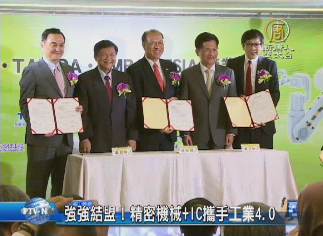 【新唐人亞太台 2016 年 08 月 30 日訊】智慧機械產業,是政府推動的5大創新產業之一,台灣半導體協會、機器人協會等4大產業工協會,更攜手合作,前進工業4.0,在智慧製造系列展前,今天(30日)宣告結盟,經濟部長李世光、台中市長林佳龍,都到場見證。