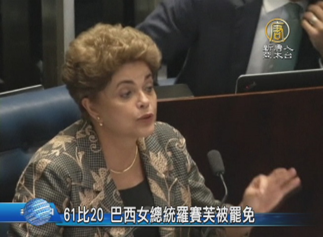 【新唐人亞太台 2016 年 09 月 01 日訊】早安新唐人,先帶您關心,國際最新消息,剛舉辦完里約奧運的巴西,再度登上外媒版面,女總統羅賽芙確定被罷免。參議院今天以61票贊成、20票反對的結果,罷免羅賽芙的總統職位,罪名是非法操縱國家預算。羅賽芙下台,終結左翼13年執政,也為長達3年的民眾抗爭及彈劾程序劃下句點。而同天,副總統 泰梅爾也宣誓就任新總統,強調要讓巴西取信於金融市場和國際投資人,促進經濟成長。
