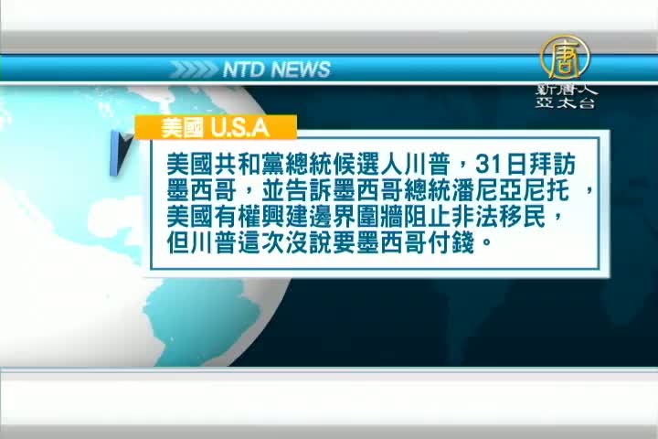 美國共和黨總統候選人川普,31日拜訪墨西哥,並告訴墨西哥總統潘尼亞尼托 ,美國有權興建邊界圍牆阻止非法移民,但川普這次沒說要墨西哥付錢。