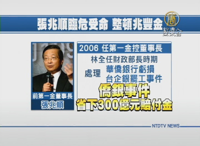 【新唐人亞太台 2016 年 09 月 01 日訊】行政院在一天之內火速核定,由前第一金董事長張兆順,接掌兆豐金兼兆豐銀董事長。林全今天也約見張兆順,正式確認這項人事案,張兆順,可以說是臨危受命,而從他過往資歷來看,扮演救火隊的角色,不是第一次。