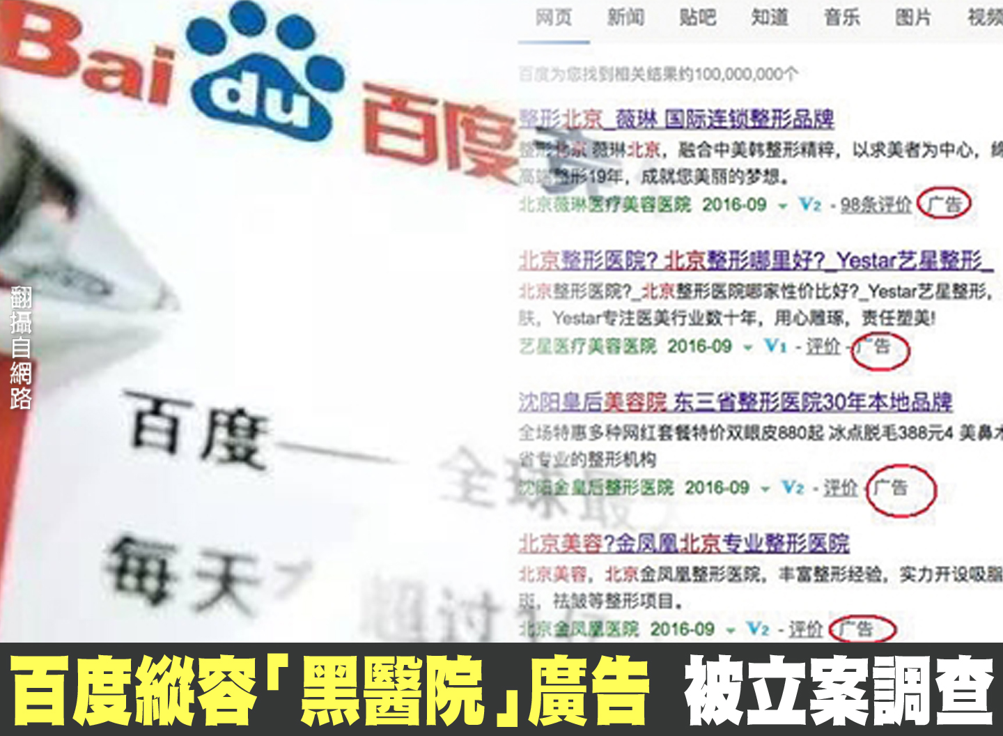 百度縱容「黑醫院」廣告 被立案調查