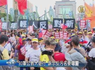 93軍人節,監督年金改革聯盟,號召軍公教團體走上凱達格蘭大道遊行,遊行訴求「反污名、要尊嚴」,要向總統蔡英文表達,年金改革過程中,遭污名化的不滿。