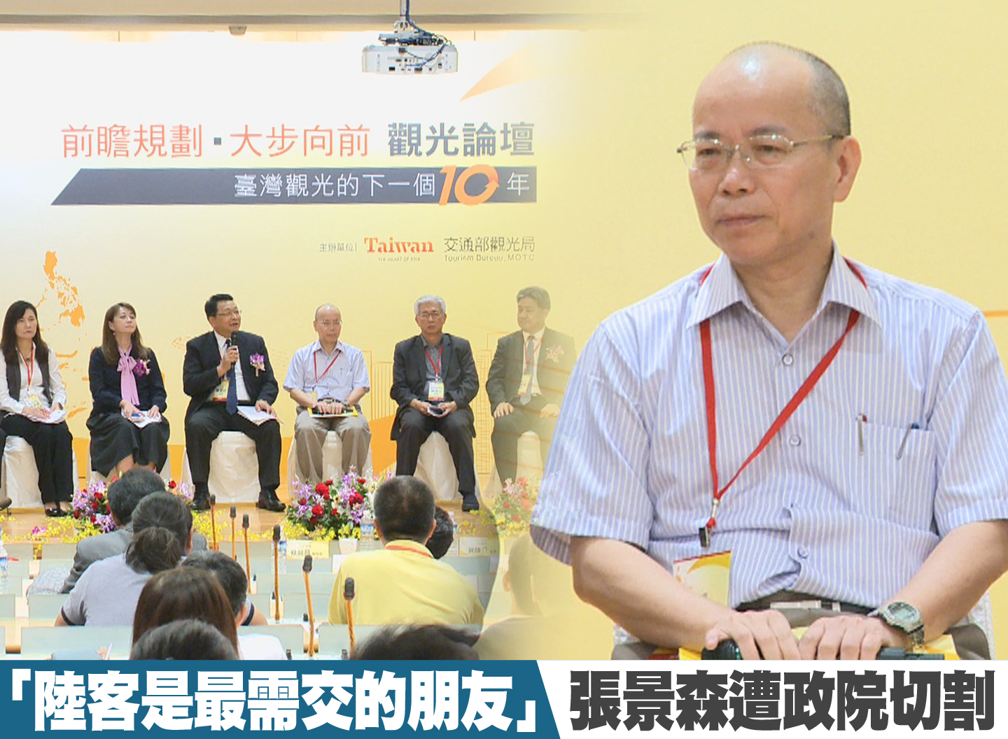 【新唐人亞太台 2016 年 09 月 05 日訊】再來看到,520後,陸客來台人數驟減,除了北京的政治因素之外,719遼寧陸客團火燒車事故,也嚴重影響陸客來台意願,負責督導觀光的政委張景森就在臉書喊話,呼籲網友別再發表歧視陸客的言論,要跟陸客交朋友,不過這番言論,卻被行政院認為,是張景森的個人意見。
