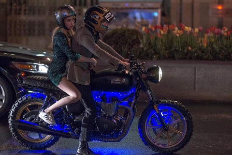 好萊塢甜美女星艾瑪羅勃茲穿著超短裙騎車飆速、走高樓天梯。(圖/威望國際娛樂股份有限公司提供)