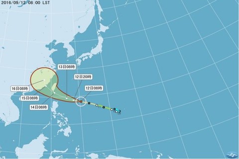 【新唐人亞太台 2016 年 09 月 12 日訊】莫蘭蒂強度已增強為強颱,暴風半徑也擴大,目前七級風暴風半徑擴大為200公里,中午位置大約距鵝鑾鼻東南東1000公里海面,以每小時22公里速度,朝西北西轉西北行進,朝恆春半島方向移動,預計今晚發布海上颱風警報,範圍可能包括巴士海峽與台灣東南部海面。