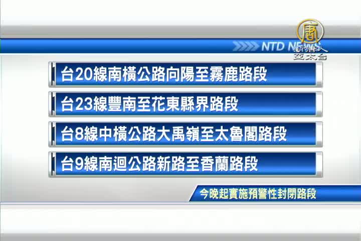 【新唐人亞太台 2016 年 09 月 13 日訊】中秋連續假期遇上颱風,接下來帶您來看到今明兩天的交通資訊。高鐵和台鐵都因應旅客需求,加開班次。不過,要經由公路返鄉的民眾可得特別注意。公路總局發布消息,截至今晚6點,今天晚間有四個路段將實施預警性封閉。包括:台20線南橫公路向陽至霧鹿路段、台23線豐南至花東縣界路段、台8線中橫公路大禹嶺至太魯閣路段、台9線南迴公路新路至香蘭路段。
