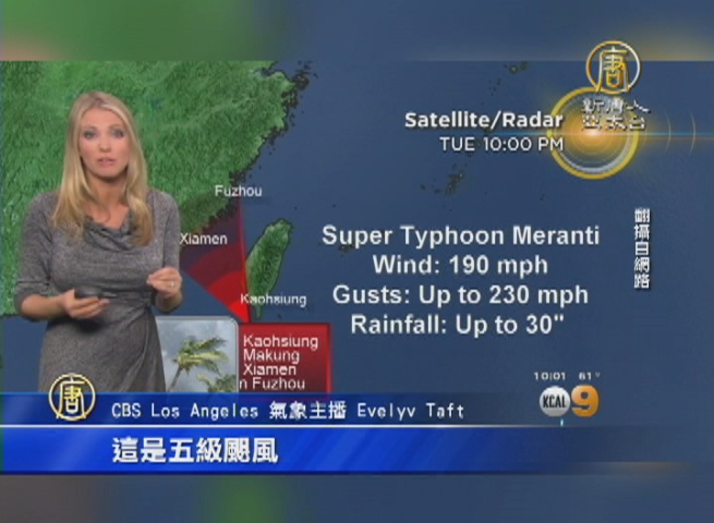 CBS Los Angeles 氣象主播 Evelyv Taft:「再說一次,我們說的是風速每小時190英哩,用我們的標準來說,這是五級颶風。」