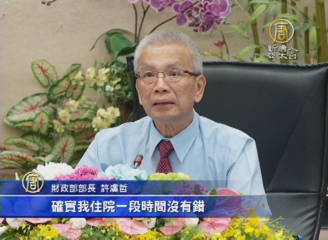 財政部部長 許虞哲:「確實我住院一段時間沒有錯,我8月18才出院,在財委會各位曉得,就嘴巴破而已,那復原的情況比較慢一點點。我該看的公文,該參加的重要會議,全部都有參加。在我體力能夠負荷的情況之下,我一定全力去打拼。」