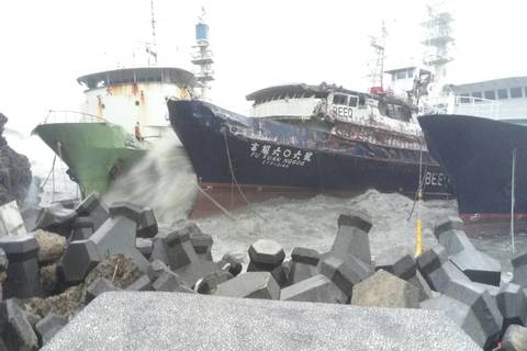 莫蘭蒂威力強勁 高雄港四艘漁船擱淺
