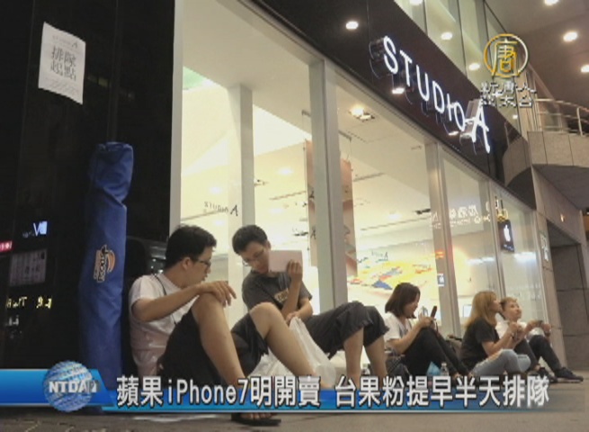 【新唐人亞太台 2016 年 09 月 15 日訊】蘋果iPhone7明天將在台灣開賣,雖然之前多家分析師都不看好,但台灣經銷商指出,iPhone7預購量已經比i6S多出5倍,今天晚上我們先走一趟台北的蘋果專賣店,發現約有4、5組客人,已經在排隊等候。