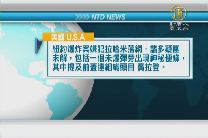 紐約爆炸案嫌犯拉哈米落網,諸多疑團未解,包括一個未爆彈旁出現神秘便條,其中提及前蓋達組織頭目 賓拉登。