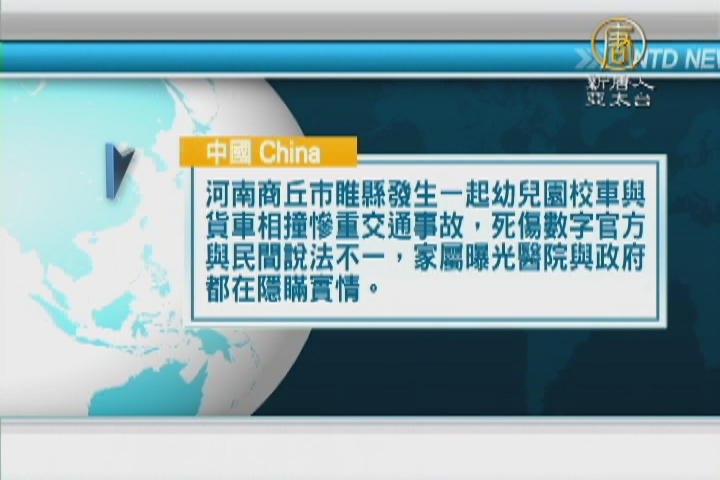 河南商丘市睢縣發生一起幼兒園校車與貨車相撞慘重交通事故,死傷數字官方與民間說法不一,家屬曝光醫院與政府都在隱瞞實情。