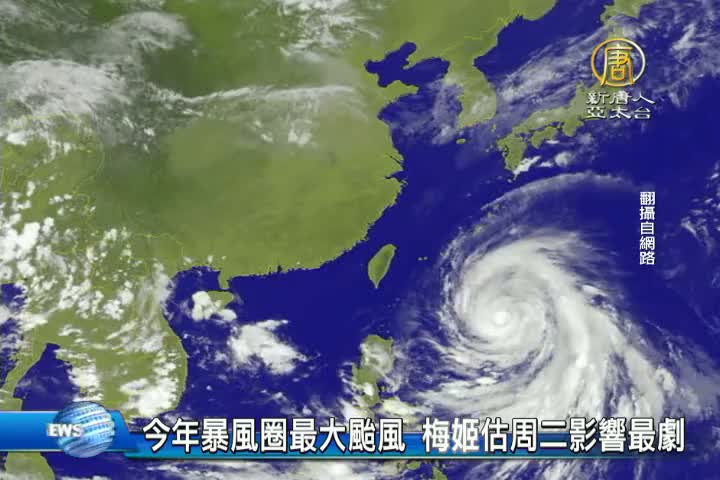 【新唐人亞太台 2016 年 09 月 25 日訊】新聞頭條先帶您關心,中度颱風梅姬威力不斷增強,暴風半徑也有擴大跡象,氣象局表示,不排除今天晚上8點半就會發布海上警報,陸上警報也可能提前到明天清晨或上午發出。氣象局說,梅姬將是今年侵台的颱風中,暴風圈最大的颱風,全台灣都會籠罩在暴風圈中。估計,星期二將是影響台灣最明顯、風雨最大的時候,星期三颱風會逐漸遠離。