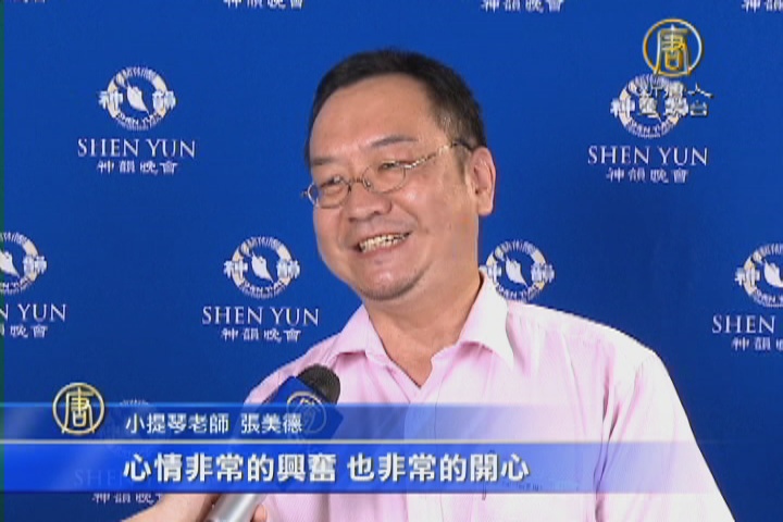 小提琴老師 張美德:「安可了三次,然後就覺得還沒有滿足。是是是,所以神韻交響樂團真的是一個有文化、有技術,而且是一個非常專業的交響樂團,我誠心的推薦給大家。」