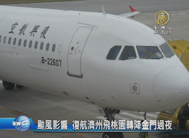 【新唐人亞太台 2016 年 09 月 27 日訊】梅姬颱風來攪局,復興航空一架編號GE-865、由韓國濟州島飛往台灣的班機,原訂今天中午12點降落桃園機場,因颱風影響,飛機只好滯留在金門,機上129名旅客入境金門過夜。
