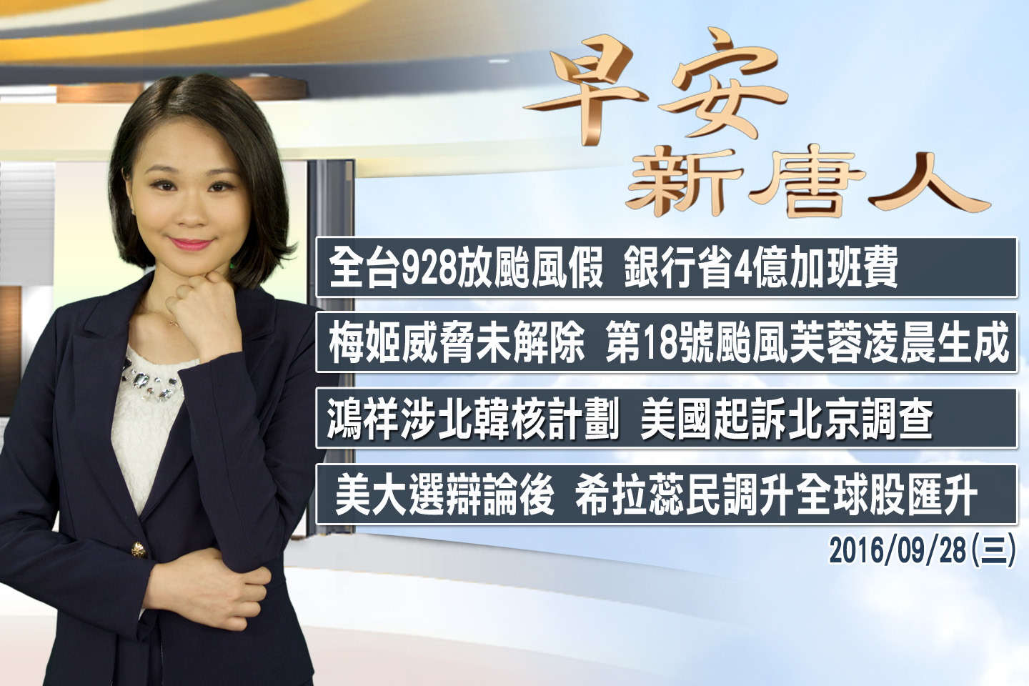 【新唐人亞太台 2016 年 09 月 28 日訊】◎全台928放颱風假 銀行省4億加班費