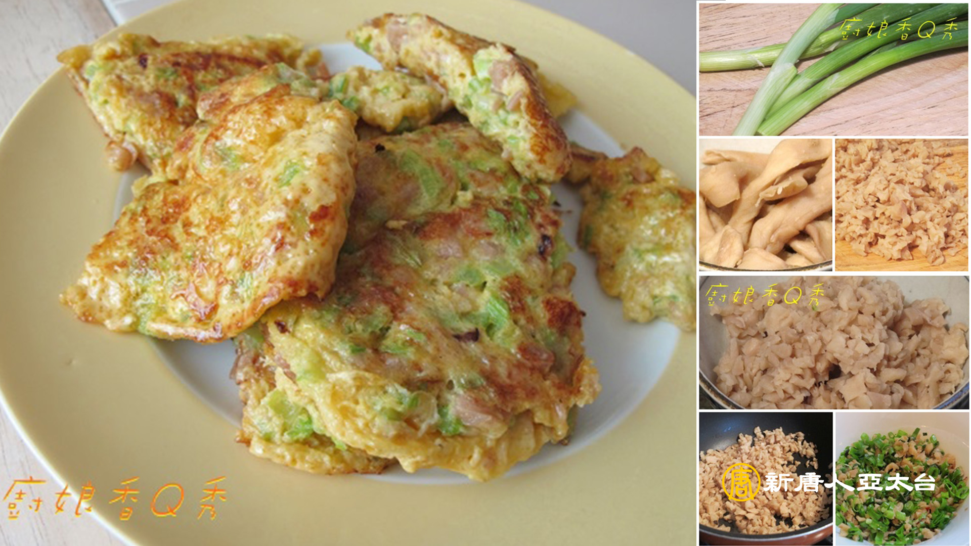 蛋3顆、豬油適量、糖1小匙、蘿蔔乾3大匙(切碎後)、蔥3根、醬油數滴、高湯2大匙