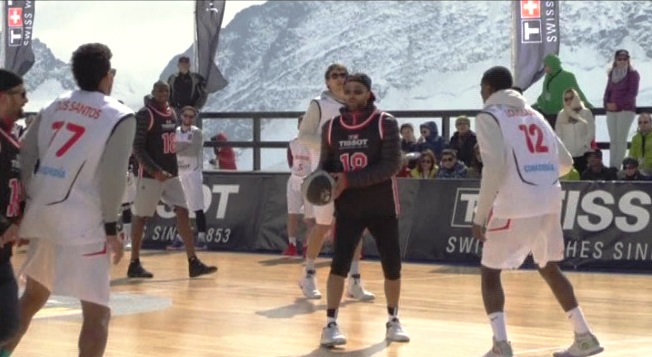 雖然是秋分時節,在阿爾卑斯山上早已經是冰天雪地,並吹起陣陣的強風;在這種美麗壯觀的冰天雪地環境下打籃球,雖然當天晴空萬里,想必是別有一番滋味。