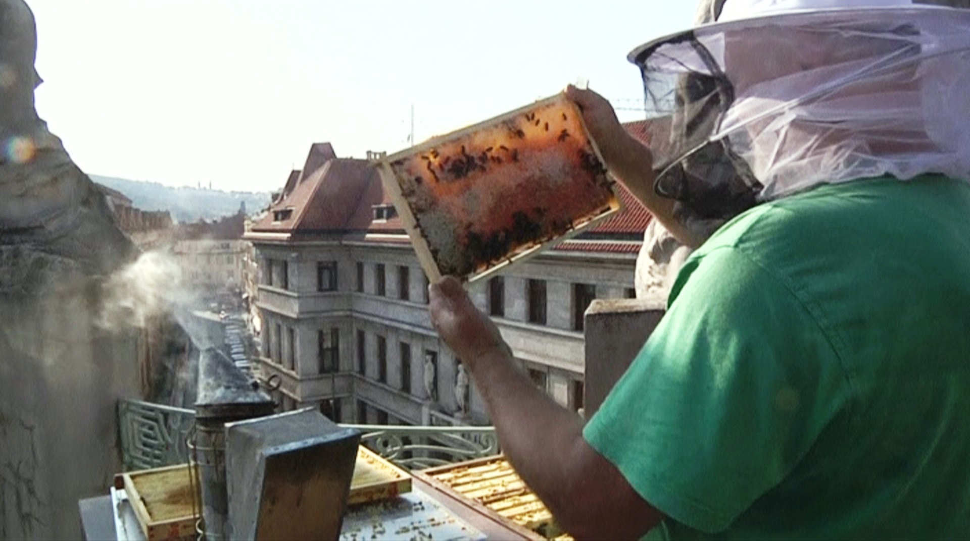 在捷克布拉格市政廳的頂樓就有幾十萬隻的蜜蜂居民們這裡安家築巢,並且在市政廳周圍辛勤工作著,牠們現在是布拉格的重要迎賓員,每天忙著製作品質絕佳的蜂蜜,打響了「金色布拉格」的名號。