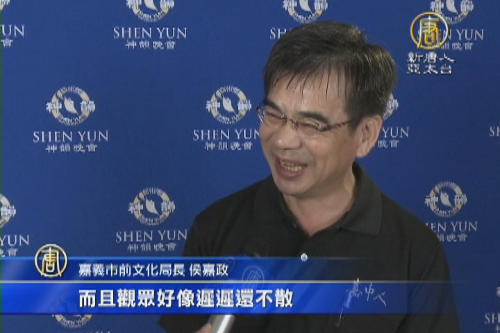 嘉義市前文化局長 侯嘉政:「透過管弦樂,把中華的作曲把她作出來、編曲,是不容易的,我是滿感動的,而且據我所知,這些很多曲目都是神韻的藝術團裡面的一個曲(舞蹈節目伴奏),那我過去有看過,神韻藝術團的表演,可是第一次親臨有這種大型的管弦樂,有七、八十位音樂家,我覺得滿感動的。」