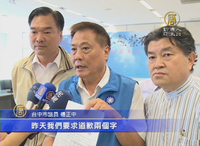 台中市議員 楊正中:「昨天我們要求道歉兩個字,今天我們再退了100步,加上這一個造成議會的困擾謹表歉意,林佳龍市長跟民進黨團不願意。」