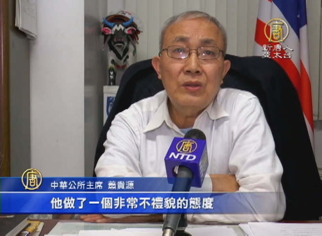 中華公所主席蕭貴源:「人家明明不喜歡,你為什麼要挑釁老人家?你挑釁他就等於是侮辱老人,以中國文化的話,我們是尊老,他做了一個非常不禮貌的態度。」
