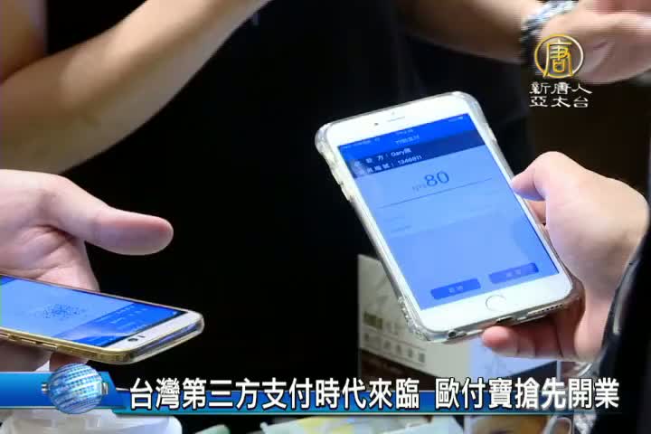 【新唐人亞太台 2016 年 10 月 07 日訊】台灣電子支付公司歐付寶今天舉行三方支付開業記者會,成為台灣首家正式營運第三方支付業務的公司,歐付寶董事長林一泓表示,明年合作店家將超過10萬家,將讓行動支付遍及全台每個角落。