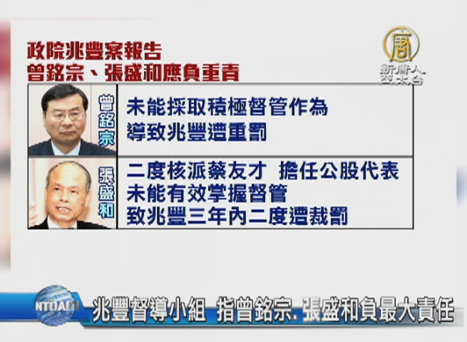 【新唐人亞太台 2016 年 10 月 08 日訊】來關心,行政院追查兆豐案,又有最新發展,督導小組昨天(7日)公布查核報告,點名前金管會主委曾銘宗和前財政部長張盛和2人,要負最大責任,不過,曾銘宗反批民進黨泛政治化,拿他和張盛和當祭旗。