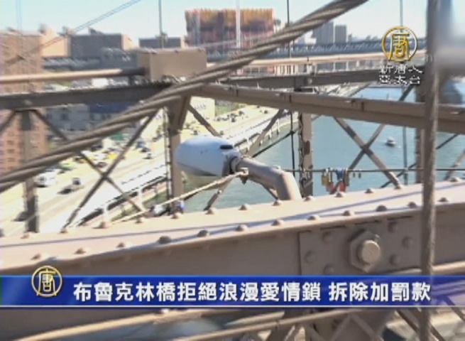 【新唐人亞太台 2016 年 10 月 08 日訊】新聞鏡頭來到紐約,紐約市的布魯克林大橋是著名景點,近年更是被一對對的戀人懸上愛情鎖。不過,今後這樣表白心跡的機會比較渺茫了。還可能付出100美元的代價 。