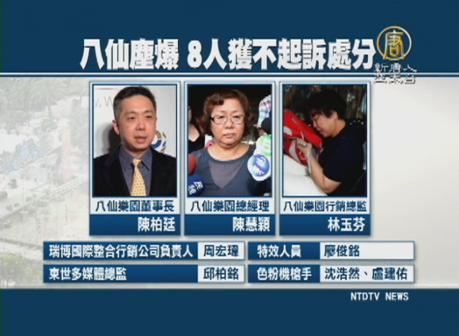 【新唐人亞太台 2016 年 10 月 11 日訊】八仙粉塵爆炸案,受害家屬因不滿八仙董事長陳柏廷等8人獲不起訴聲請再議,高檢署發回士林地檢署續行偵查近半年後,士檢今天偵查終結,仍將陳柏廷等8人不起訴處分。