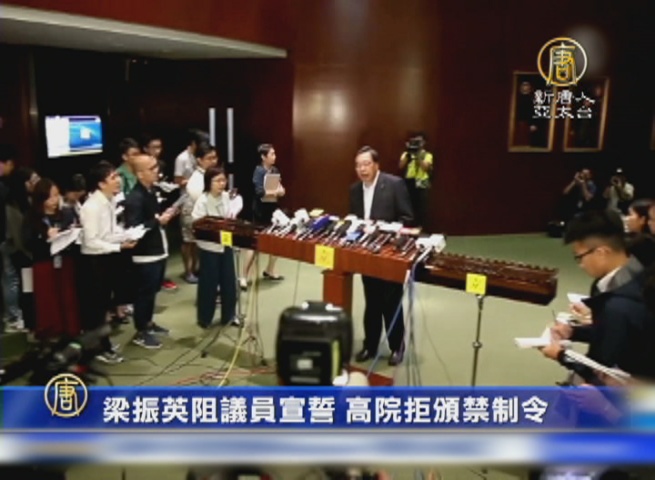 【新唐人亞太台 2016 年 10 月 19 日訊】好,香港議員用英文發表帶有諷刺字眼的宣誓,原先是要表達對中共與特首梁振英的不滿,但現在風波卻越演越烈;昨天梁振英甚至要求頒「禁制令」,禁止2位青年議員再次宣誓,不過,後來,香港高院拒絕配合港府。