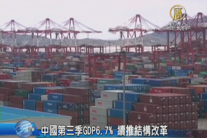 中國國家統計局,發布第三季經濟數據,GDP年成長 6.7%,低於去年同期增長的6.9%,續創25年來新低紀錄。