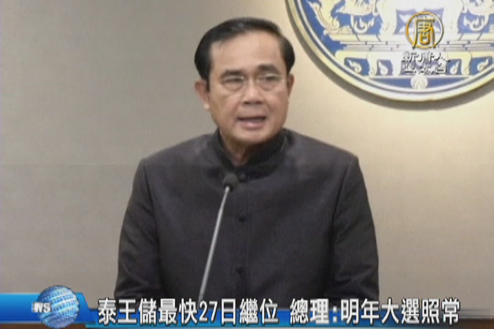【新唐人亞太台 2016 年 10 月 19 日訊】曼谷郵報報導,泰國總理帕拉育昨天表示,當局考慮在泰王蒲美蓬去世的第15天後,正式啟動王位繼承程序。帕拉育表示,泰國新憲法將依臨時憲章規定,呈交給新國王 瓦吉拉隆功簽署,但正式加冕典禮,要等蒲美蓬的火化儀式過後。帕拉育並表示,泰國重回民主政體的規畫沒有改變,包括預定明年稍晚舉行大選。