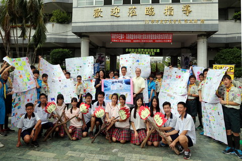 收集到的卡片進行拼貼完成12張大海報,現場參與的貴賓們也一起簽署保護地球承諾書(中庄國中提供)