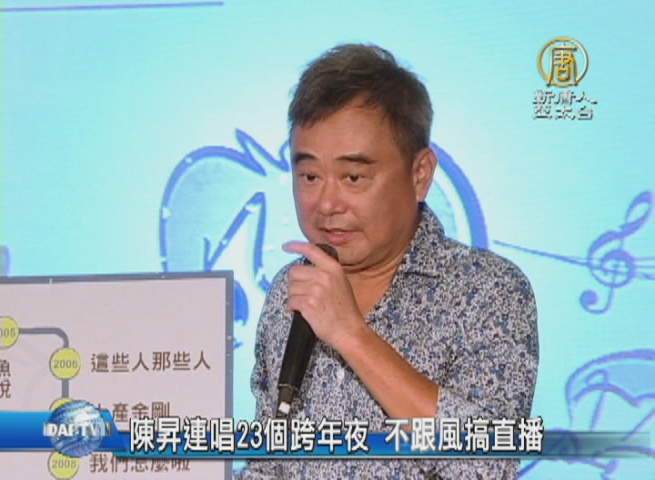 【新唐人亞太台 2016 年 10 月 20 日訊】藝人陳昇,即將在今年跨年夜,舉行第23年的跨年演唱會;他感性地談到,23年前,當公司其它藝人都出國,只有他留在台灣扛下演出,也演變成年年演唱的紀錄。另外,被問到昨天同門師兄周華健演唱會的直播風波,陳昇也作出回應。