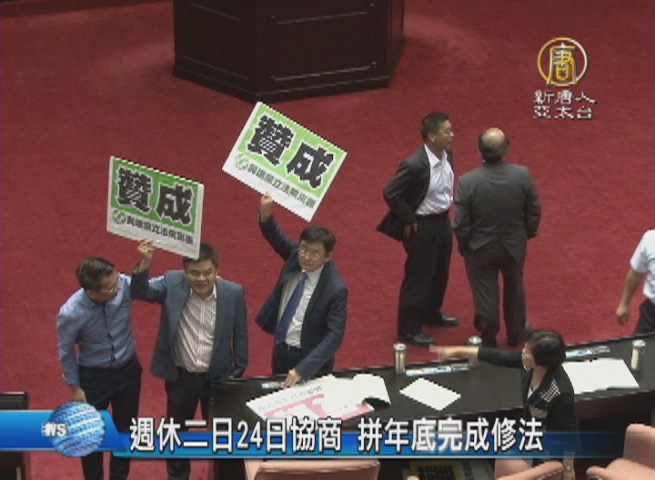 【新唐人亞太台 2016 年 10 月 21 日訊】攸關勞工的周休二日修法,立法院朝野黨團將在下週一(24)進行協商。立法院會今天(21)上午處理國民黨團的修法版本,被拉下協商,將併同民進黨團修法版本,在下星期一進行協商。民進黨團總召集人柯建銘說,希望12月31日前完成修法。