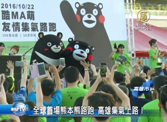 【新唐人亞太台 2016 年 10 月 22 日訊】全球人氣指數破表的日本熊本熊部長,今天(22日)在高雄市舉辦路跑,邀集全台喜愛熊本熊的粉絲們一起活力跑高雄,現場還有77歲阿嬤,跑完全程,精神可嘉。