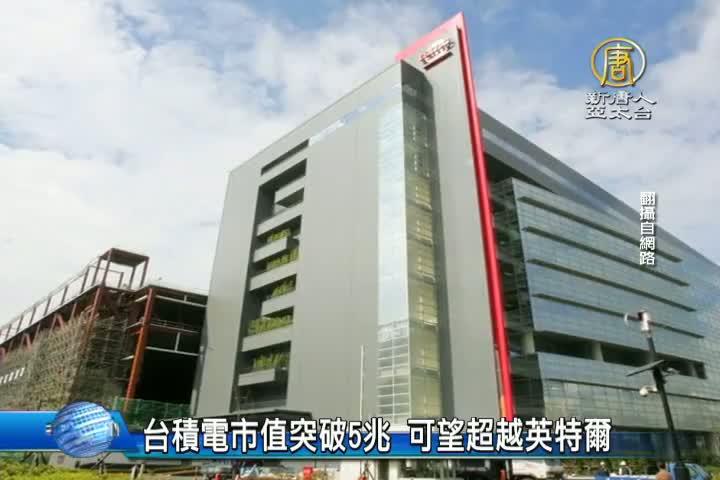 【新唐人亞太台 2016 年 10 月 25 日訊】台積電第3季營運再創新高,在外資加持下,今天股價持續走高,來到193元,台積電市值也正式突破5兆元,改寫台股新紀錄。如果與全球半導體龍頭英特爾比較,台積電與英特爾目前僅相差約 2880億台幣,台積電股價只要持續漲到 204元左右,就有機會超越英特爾,成為全球市值最大的半導體廠。