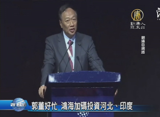 【新唐人亞太台 2016 年 10 月 25 日訊】鴻海富士康集團總裁郭台銘,10月下旬行程滿檔,陸續走訪中國深圳、杭州、北京及河北等地,陸媒稱,郭台銘參訪河北時表示,將加強河北投資,鎖定智慧製造和互聯網+等領域。另外,印度媒體報導,鴻海預計明年擴大工廠在印度的營運,明年的擴展中包含了諾基亞的相關規劃。